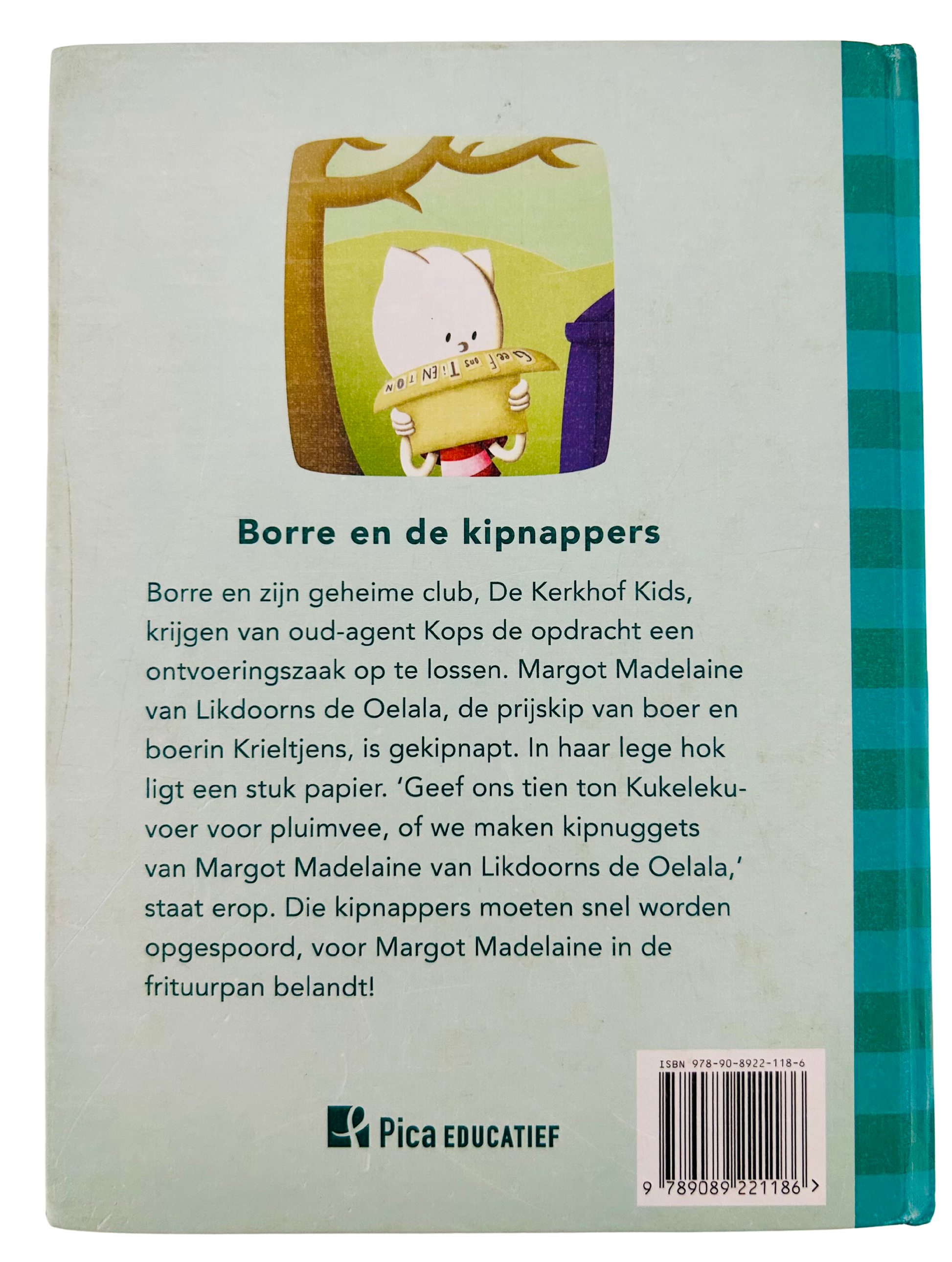 Borre and his friends from the Graveyard Kids have a kidnapping case to solve. Margot Madelaine van Likdoorns de Oelala, the prize hen of Farmer and Mrs. Krieltjens, has been chick-napped! In her empty coop, they find a note: