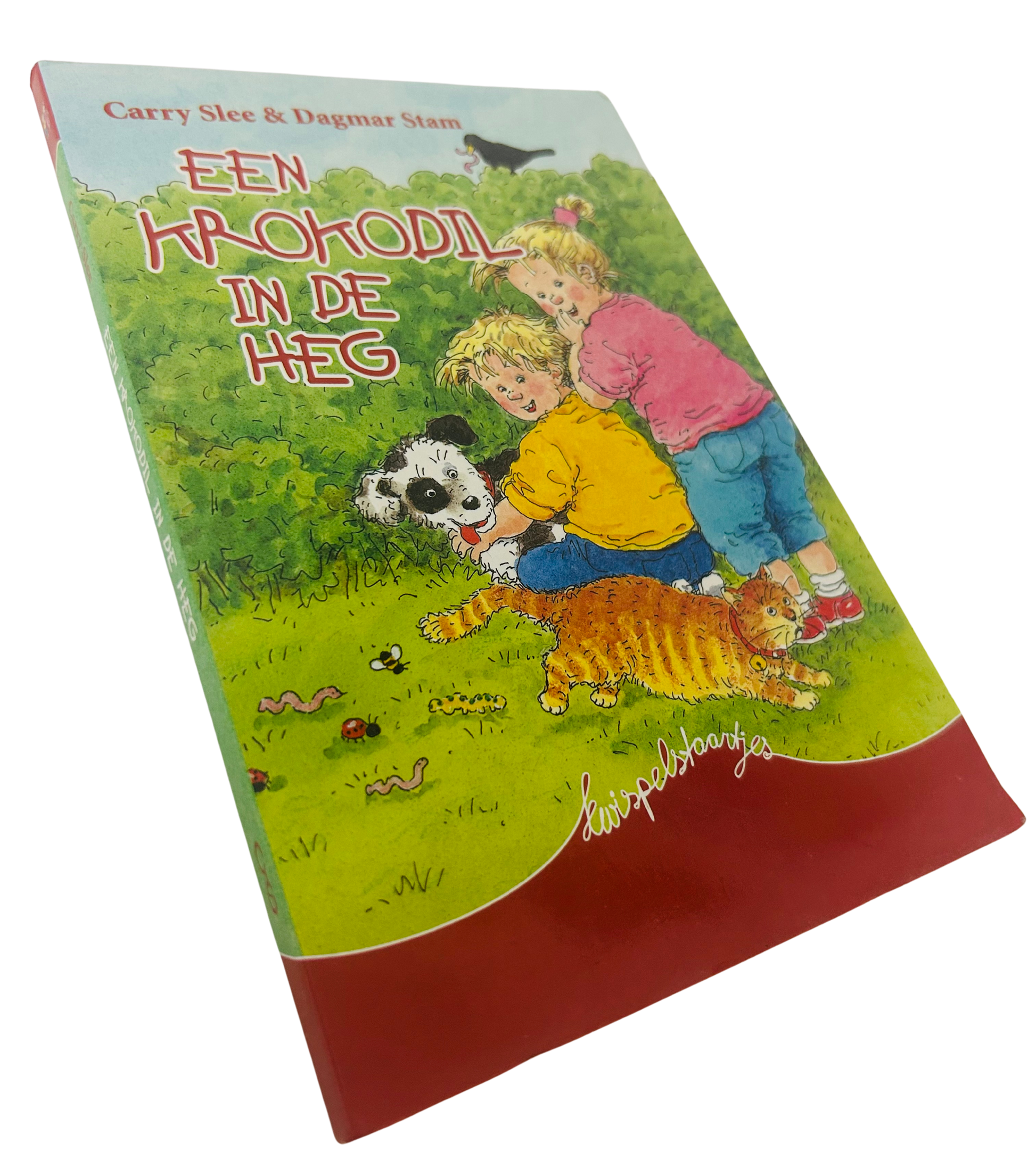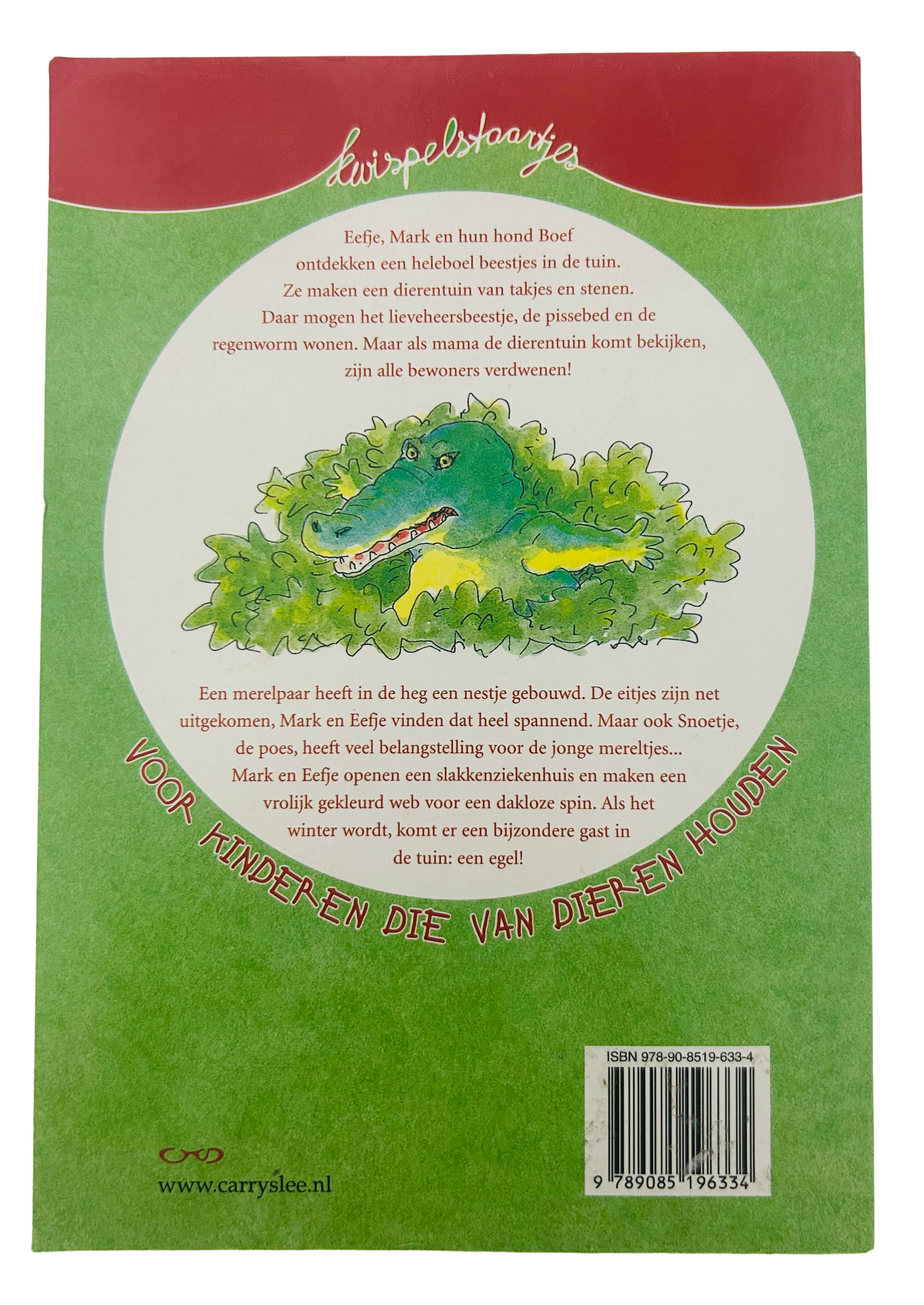 Een krokodil in de heg is a sweet story about Eefje and Mark, who turn their garden into a mini zoo and go on fun adventures with bugs, birds, and a surprise winter guest. A playful tale about nature and imagination for young children.