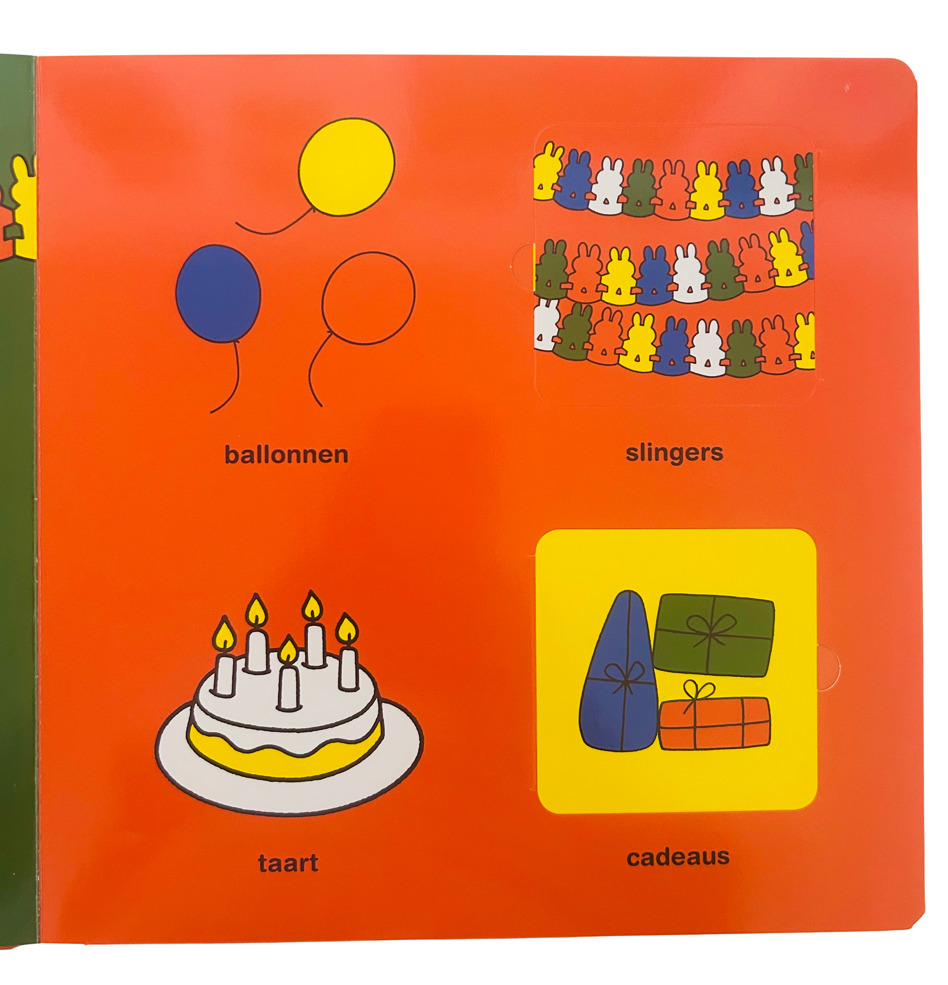 Everything that keeps toddlers and preschoolers busy can be found in this book. Nijntje discovers the world around her. She goes to school and to the farm, she and Nina stay with Grandma and Grandpa, and it's her birthday. Will you join Nijntje on her discovery tour? Peek behind the flaps and discover what else Nijntje does and sees. A festive, thick book with over 40 flaps to keep looking, naming, and discovering.