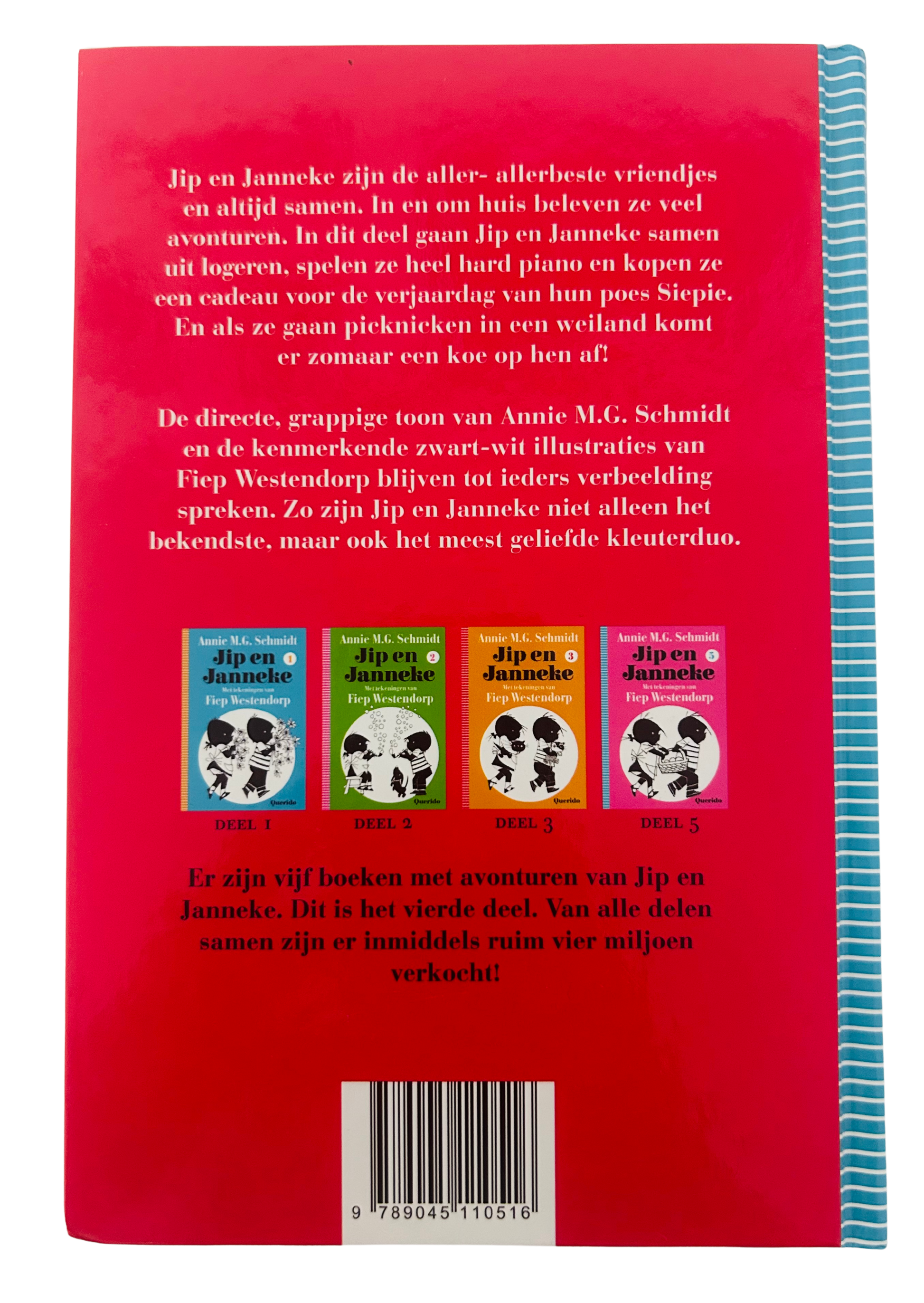 Jip and Janneke are the very best of friends and always together. They experience many adventures in and around the house. In this part, Jip and Janneke go to sleep over together, play the piano very loudly and buy a birthday present for their cat Siepie. And when they go for a picnic in a meadow, a cow suddenly comes up to them! The direct, funny tone of Annie MG Schmidt and the characteristic black and white illustrations of Fiep Westendorp continue to appeal to everyone's imagination. This makes Jip and Janneke not only the best-known, but also the most beloved toddler duo.