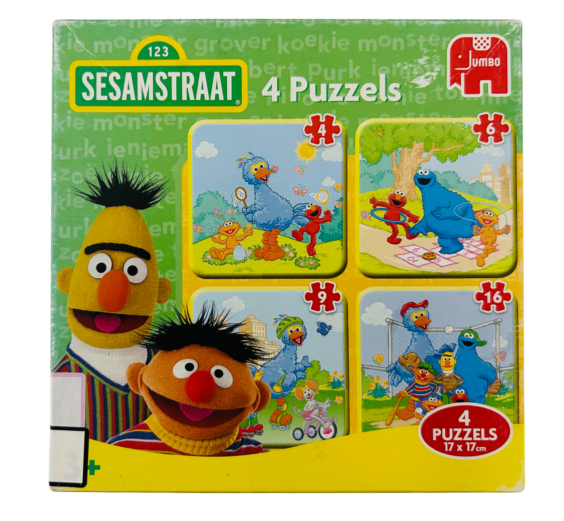Get ready for some puzzling fun with Sesamstraat! These 4 puzzles, with 4, 6, 9, and 16 pieces, are perfect for children ages 3 and up.
