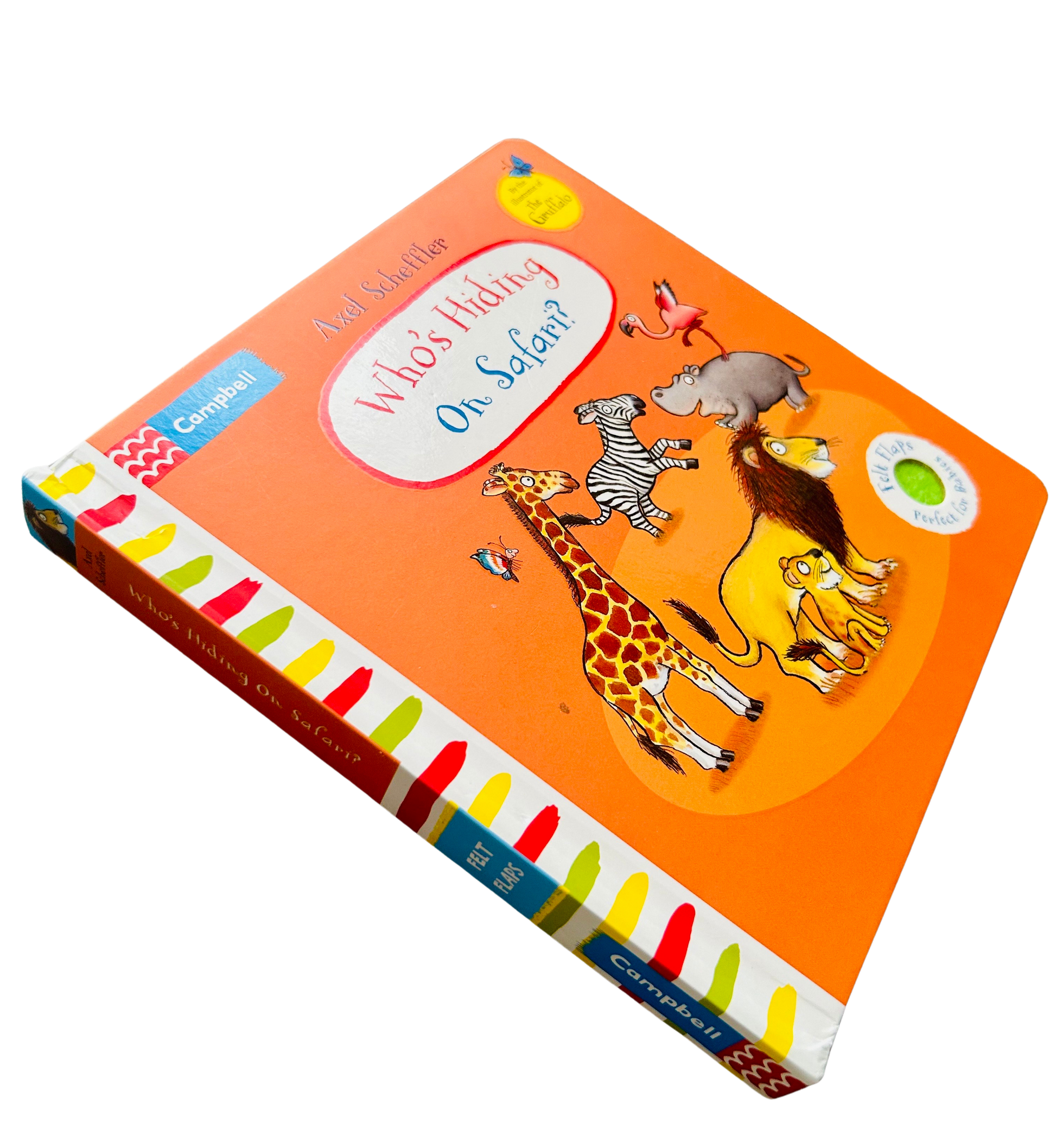 A chunky board book for babies about animals on safari, with soft flaps to lift on every page.