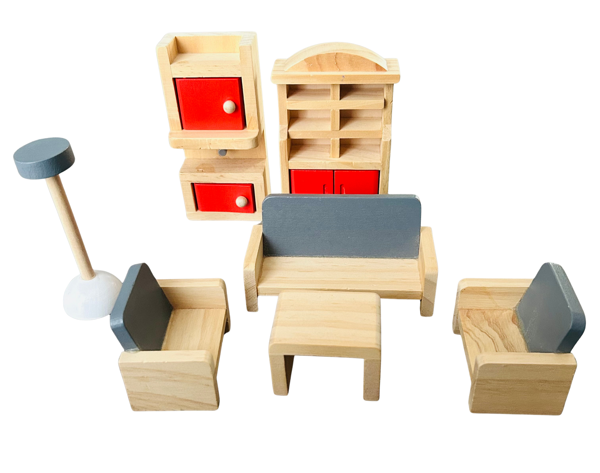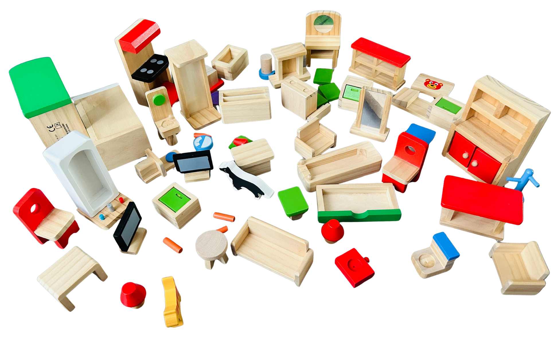 🪑 Complete Wooden Dollhouse Furniture Set – 80+ Pieces